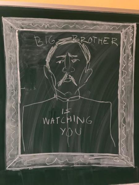 Studenti 4.D, 5.C, 5.D (skupiny p.Ošťádalové) doma četli slavný dystopický román 1984 ve zjednodušené verzi. Ve škole pak analyzovali klíčové momenty a diskutovali o svých názorech a postojích. Nakonec studenti části textu převedli do scénické podoby.