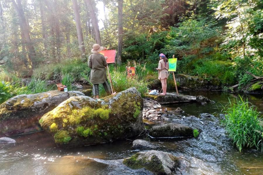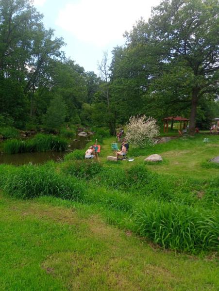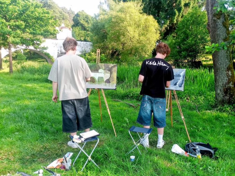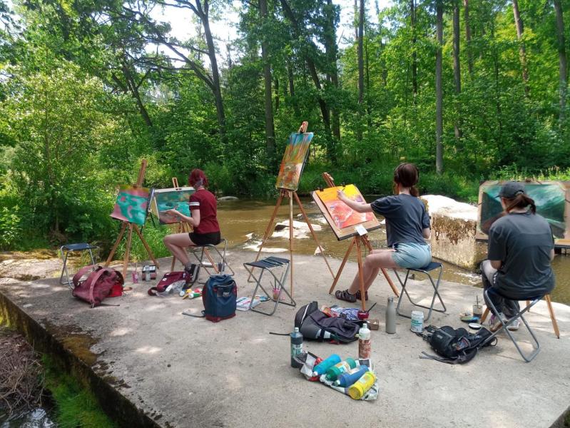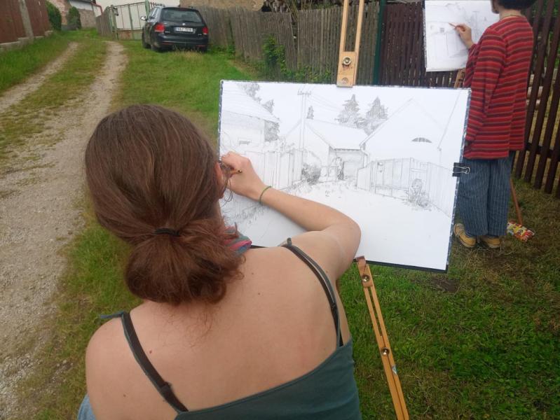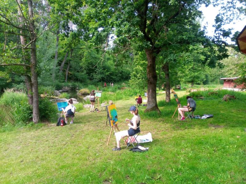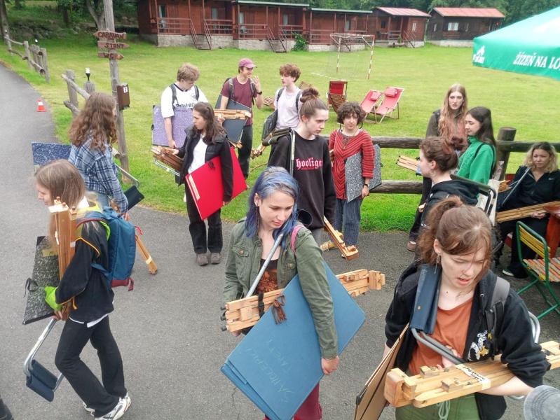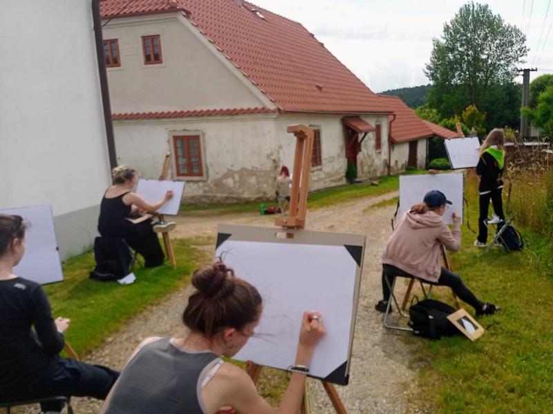 Krajinářský kurz ve Varvažově u Písku se letos v režii Kvinty C opravdu povedl – všechno klaplo, počasí přálo a hlavně: tvořilo se o sto šest. Kresby i malby vznikaly přímo ve vesnici nebo u říčky Skalice a rozhodně je za co se pochválit – ohlasy od místních to jen potvrdily.