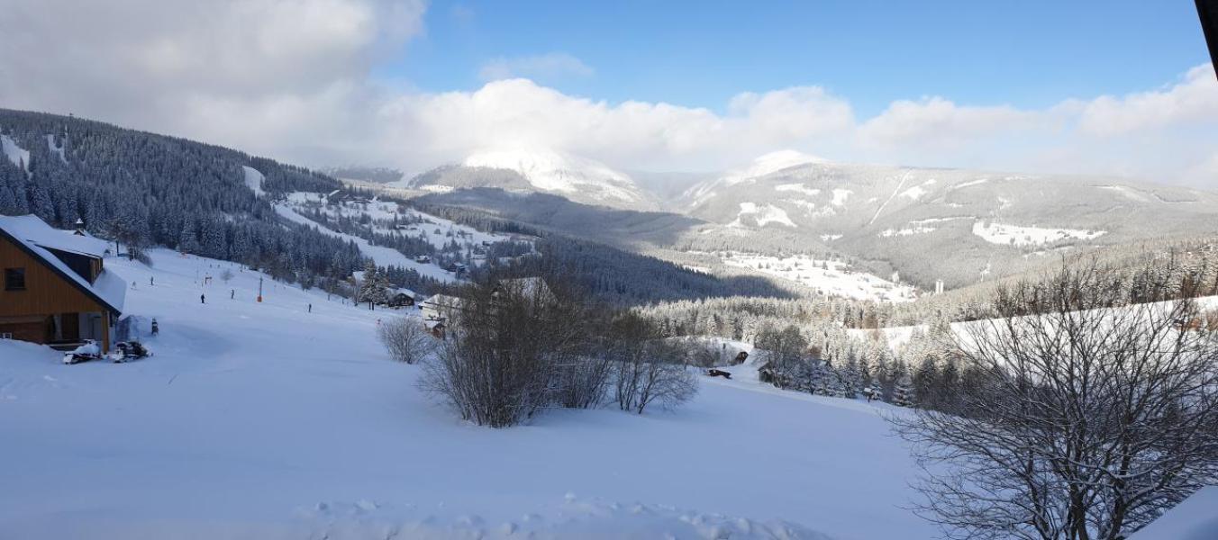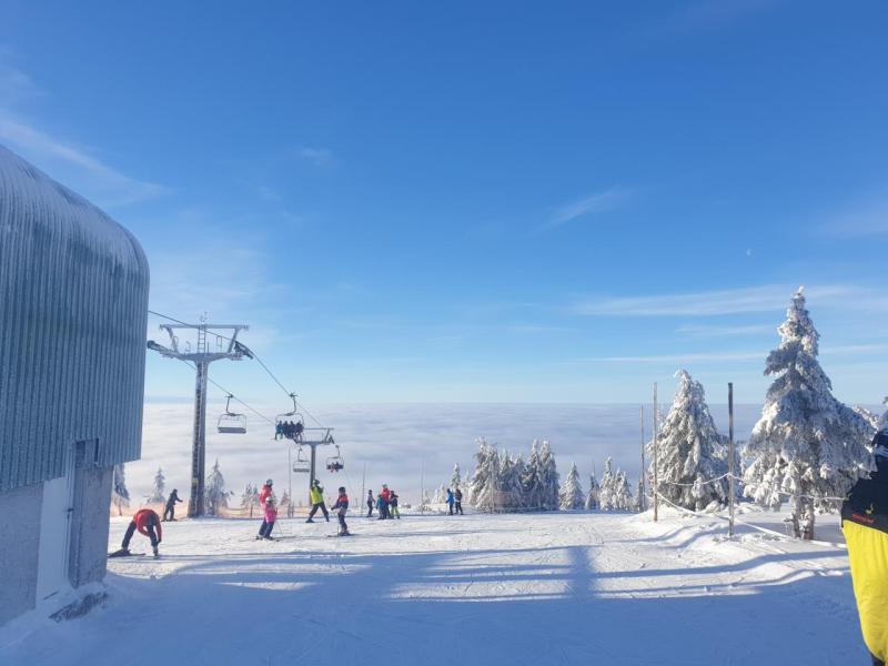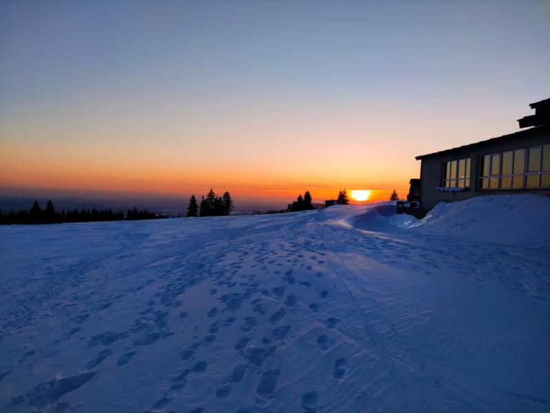 I cesta na jídlo znamenala vyjít do kopce, občas s výhledem na krásnou krajinu, jindy s krásnou mlhou a viditelností na tři metry, a po předchozím lyžování nebo běžkování rozhodně nehrozilo, aby někdo neměl hlad a jídlo bylo naštěstí skvělé.